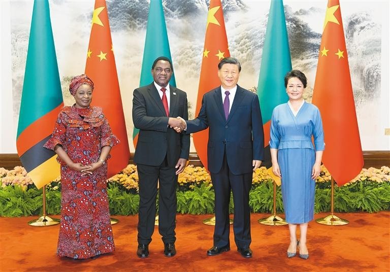 习近平指出,当前,发展中国家群体性崛起,国际影响力不断增强,已经成为不可逆转的时代潮流。我们要加强团结协作,践行真正的多边主义,坚定维护国际公平正义,努力提升发展中国家话语权,维护两国和广大发展中国家共同利益。中非合作已经成为南南合作和国际对非合作的引领者。真诚平等、互利共赢、捍卫正义、开放包容这些中非友好的主线和底色从未改变。中国坚定支持非洲国家走独立自主的发展道路,坚定支持非洲国家成为世界政治、经济、文明发展的重要一极。中方愿同包括赞比亚在内的非洲国家一道,落实好“支持非洲工业化倡议”等中非领导人对话会成果,加强战略对接,深化各领域合作,支持非洲国家不断提升自主发展能力,实现经济复苏和可持续发展,携手构建新时代中非命运共同体。