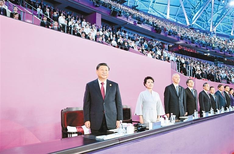 潮涌钱江喜迎盛会,携手同行共创未来。第十九届亚洲运动会23日晚在浙江省杭州市隆重开幕。国家主席习近平出席开幕式并宣布本届亚运会开幕。