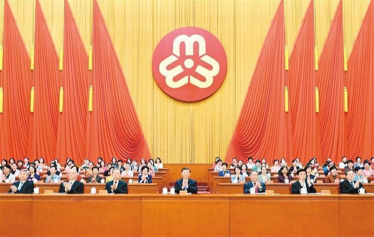 10月23日,中国妇女第十三次全国代表大会在北京人民大会堂开幕。习近平、李强、赵乐际、王沪宁、蔡奇、丁薛祥、李希等在主席台就座,祝贺大会召开。