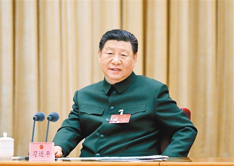 3月7日下午,中共中央总书记、国家主席、中央军委主席习近平出席十四届全国人大二次会议解放军和武警部队代表团全体会议并发表重要讲话。