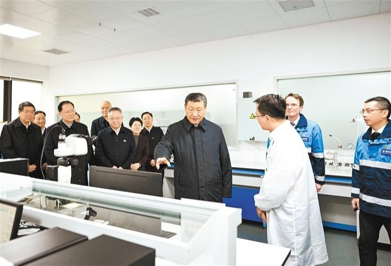 随后,习近平来到巴斯夫杉杉电池材料有限公司考察。这是一家主营锂离子电池正极材料研发、生产和销售的中德合资企业。习近平听取当地加快发展新质生产力、扩大高水平对外开放等情况介绍,察看企业产品展示,了解材料性能测试情况和电池生产流程。他强调,科技创新、高质量发展是企业不断成长壮大、立于不败之地的关键所在,民营企业、合资企业在这方面都可以大有作为。中国开放的大门会越开越大,我们愿意同世界各国加强交流合作,欢迎更多外国企业来华投资发展。