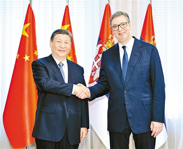 当地时间5月8日上午,国家主席习近平在贝尔格莱德塞尔维亚大厦同塞尔维亚总统武契奇举行会谈。两国元首宣布,深化和提升中塞全面战略伙伴关系,构建新时代中塞命运共同体。