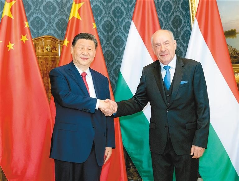 习近平强调,中国正在以中国式现代化全面推进强国建设、民族复兴伟业,这将给世界带来巨大机遇。中方欢迎匈牙利朋友搭乘中国式现代化的发展快车,愿同匈方继续深化政治互信,推动中国式现代化同匈牙利“向东开放”战略更紧密对接,深挖务实合作潜力,持续扩大各领域交流。中方愿同匈方继续引领共建“一带一路”合作和中国-中东欧国家合作正确方向,推动合作走深走实。希望匈方以今年下半年担任欧盟轮值主席国为契机,推动中欧关系平稳健康发展。
