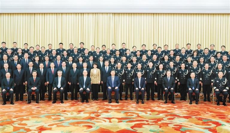 5月28日,党和国家领导人习近平、李强、蔡奇、丁薛祥、李希等在北京人民大会堂会见全国公安工作会议代表。