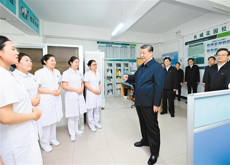 银川市金凤区长城花园社区是个多民族聚居的大型社区。习近平首先来到社区党群服务中心,走进便民服务厅、社区卫生站、爱心超市,听取社区工作介绍,详细了解社区发挥基层党组织作用、开展邻里活动和便民惠民服务等情况。随后,他来到社区活动室,饶有兴致地观看居民剪纸创作、舞蹈排练,同大家亲切交流,鼓励退休居民既要老有所养、老有所乐,又要老有所为。习近平指出,社区党组织是党联系基层群众的神经末梢,要在社区中发挥领导作用。社区党组织建好建强了,社区工作就有了主心骨。要坚持党建引领,紧紧围绕解决居民的急难愁盼问题,把服务老百姓的各项工作做深做细做到位。