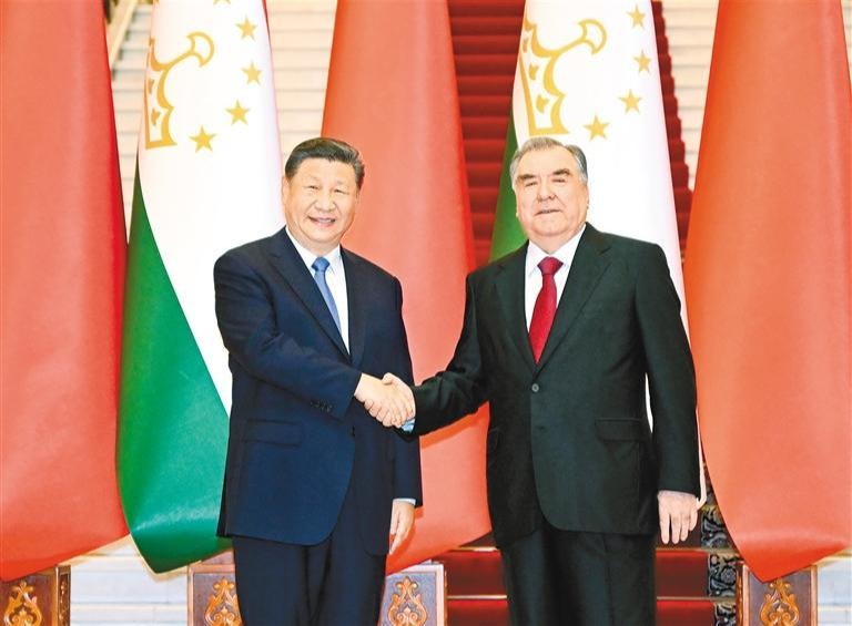 习近平指出,中国和塔吉克斯坦山水相连、唇齿相依、命运与共。两国关系具有深厚的历史渊源、坚实的政治基础、丰富的合作内涵、广泛的民意支持。在双方共同努力下,两国政治互信持续深化,共建“一带一路”合作成果丰硕,一系列重大项目进展顺利,有力促进了两国共同发展。去年,你对中国进行国事访问,我们决定致力于构建世代友好、休戚与共、互利共赢的中塔命运共同体。新形势下,中方愿同塔方发展新时代中塔全面战略合作伙伴关系,在更高起点上构建中塔命运共同体,助力两国发展振兴。