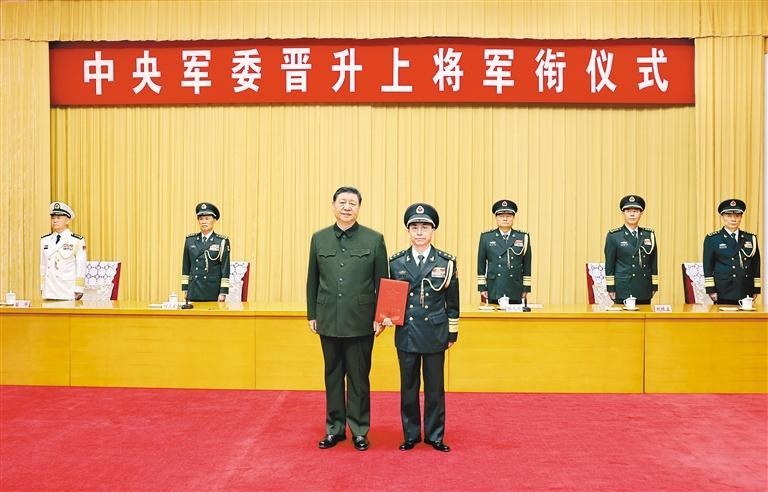 下午4时许,晋衔仪式在庄严的中华人民共和国国歌声中开始。中央军委副主席张又侠宣读了中央军委主席习近平签署的晋升上将军衔命令。中央军委副主席何卫东主持晋衔仪式。