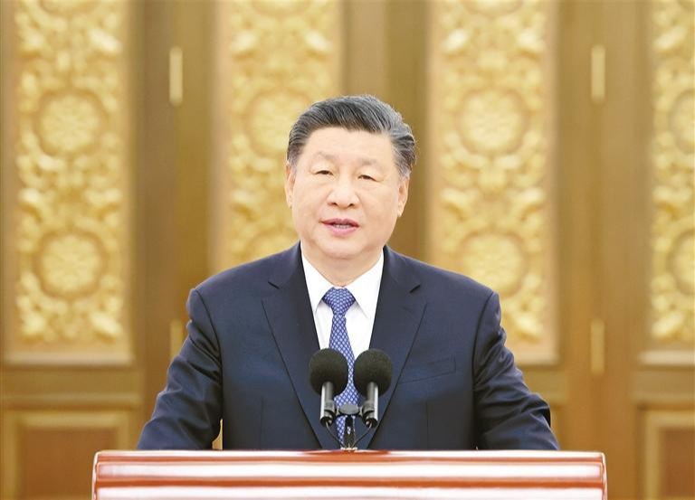 9月23日,党和国家领导人习近平、李强、赵乐际、王沪宁、蔡奇、丁薛祥、李希等在人民大会堂接见探月工程嫦娥六号任务参研参试人员代表并参观月球样品和探月工程成果展览。这是习近平发表重要讲话。