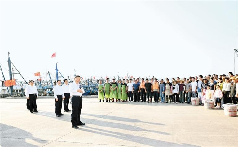 15日下午,习近平首先来到漳州市东山县考察。该县东南部的陈城镇澳角村三面临海,近年来走出一条以海兴村、以海强村的新路子。习近平步行察看澳角湾海域环境和村容村貌,详细了解海鲜干货和渔获产品交易情况。得知不少海产品购销两旺,村民收入不断增加,习近平很高兴。他对纷纷围拢过来的村民和渔民们说,你们村我23年前来过,至今记忆深刻。这次来看到村里发生了很大变化,很是欣慰、很有感慨。新时代新征程农村一定会有更加光明的前景,农民会有更加火热的生活。村级党组织要发挥火车头作用,带领乡亲们做好“海”的文章,在乡村振兴、共同富裕的道路上一往无前。