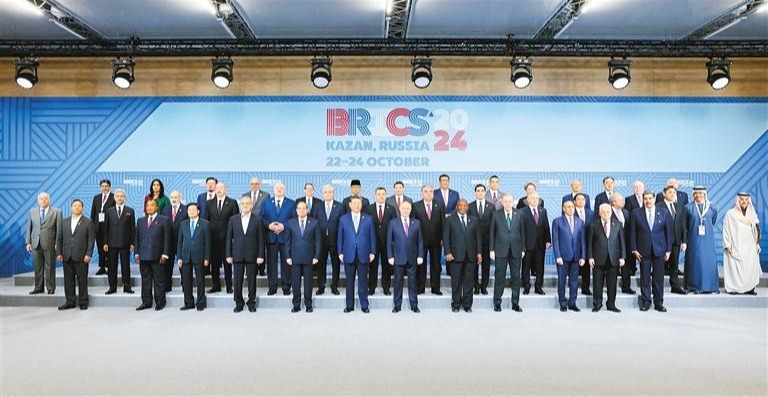 当地时间10月24日上午,国家主席习近平在喀山会展中心出席“金砖+”领导人对话会并发表题为《汇聚“全球南方”磅礴力量 共同推动构建人类命运共同体》的重要讲话。这是出席对话会的金砖国家及嘉宾国领导人或代表、国际组织负责人集体合影。