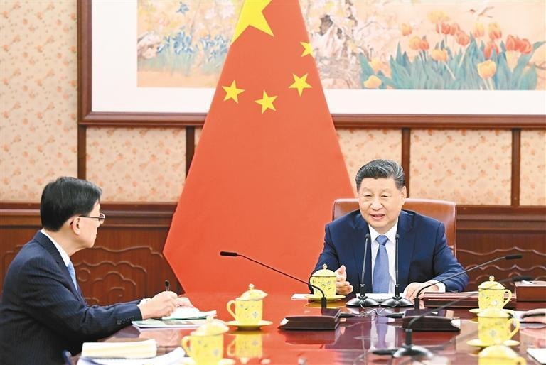 国家主席习近平13日下午在中南海瀛台会见来京述职的香港特别行政区行政长官李家超,听取他对香港当前形势和特别行政区政府工作情况的汇报。