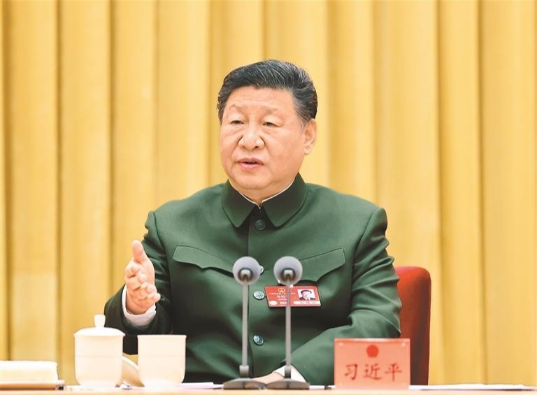 3月7日下午,中共中央总书记、国家主席、中央军委主席习近平出席十四届全国人大三次会议解放军和武警部队代表团全体会议并发表重要讲话。