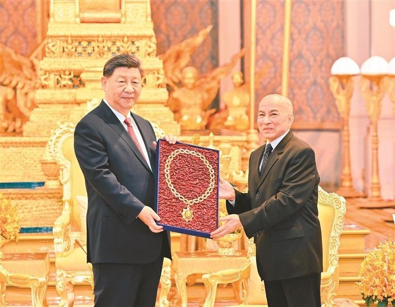 习近平表示,这枚勋章充分体现了柬埔寨对发展中柬关系的高度重视,承载着柬埔寨人民对中国人民的深情厚谊。这份荣誉不仅属于我个人,也属于所有为中柬友谊耕耘付出的友好人士。
