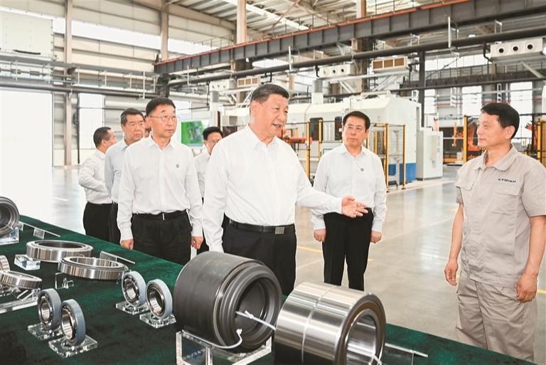 19日下午,习近平首先来到洛阳轴承集团股份有限公司考察。该公司前身为“一五”期间建成的洛阳轴承厂。在智能工厂,习近平了解企业发展历程,听取不同类型轴承产品用途和性能介绍,走近生产线察看生产流程。他对围拢过来的企业职工说,制造业是国民经济的重要支柱,推进中国式现代化必须保持制造业合理比重。现代制造业离不开科技赋能,要大力加强技术攻关,走自主创新的发展路子。他勉励职工发扬主人翁精神,在企业发展中奋发有为、多作贡献。
