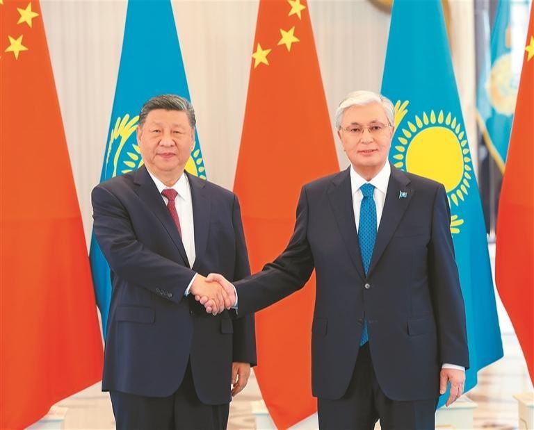 习近平指出,中哈关系历经国际风云变幻的考验,始终保持高水平运行,这得益于山水相连的地缘优势和世代友好的历史传承,也是两国共谋发展的必然选择。近年来,在我们共同擘画下,中哈命运共同体成色更足、内涵更丰富,实打实、惠民生的成果持续涌现,有力提升了两国人民的获得感。中方始终从战略高度和长远角度看待和发展中哈关系,愿同哈方一道,坚定不移巩固中哈友好,以中哈关系的稳定性和正能量为地区乃至世界和平和发展作出更多贡献。