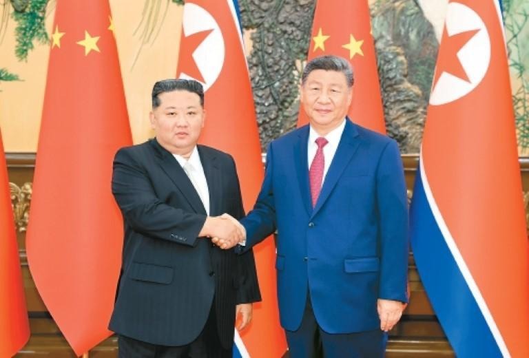 习近平指出,中朝是命运与共、守望相助的好邻居、好朋友、好同志。中朝友谊源远流长,两国都是共产党领导的社会主义国家,有着共同的理想信念和奋斗目标。金正恩总书记来华出席纪念中国人民抗日战争暨世界反法西斯战争胜利80周年活动,体现了朝方维护二战胜利成果的坚定意志,也为中朝两党两国进一步发展友好合作关系提供了重要契机。