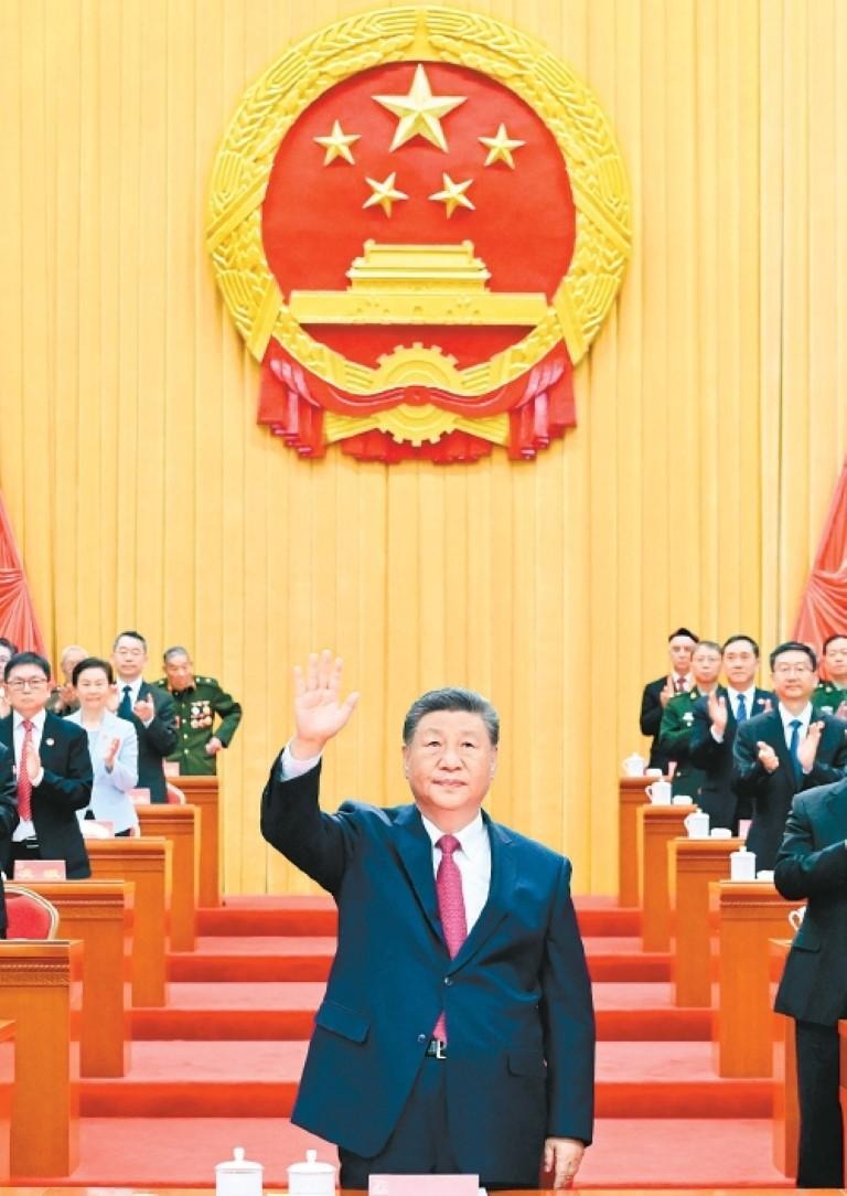 上午10时30分许,在欢快的乐曲声中,习近平等领导同志走上主席台,全场响起长时间的热烈掌声。