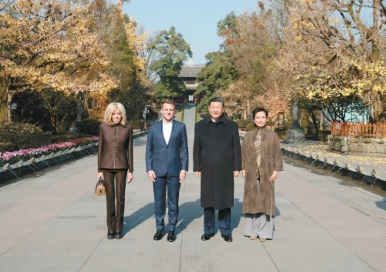 习近平夫妇邀请马克龙夫妇共进午餐,继续深入交流。