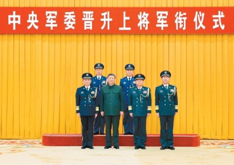 12月22日,中央军委晋升上将军衔仪式在北京八一大楼举行。中央军委主席习近平出席晋衔仪式。这是习近平等领导同志同晋升上将军衔的军官合影。