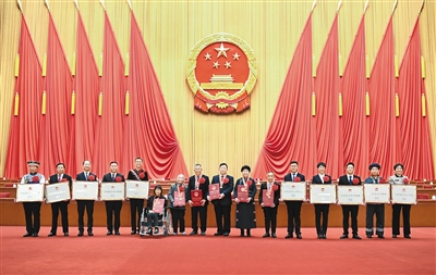 二月二十五日,全国脱贫攻坚总结表彰大会在北京人民大会堂隆重举行。这是参会的全国脱贫攻坚楷模荣誉称号获得者在会后合影留念。