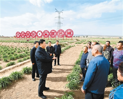5月11日下午,习近平在大同市云州区有机黄花标准化种植基地,