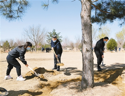 在京中共中央政治局委员、中央书记处书记、国务委员等参加植树活动。