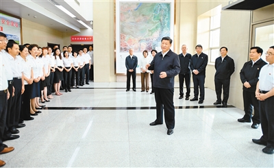 随后,习近平前往内蒙古自治区自然资源厅,调研指导自然资源厅开展“不忘初心、牢记使命”主题教育。他强调,各地区各部门在开展主题教育中要注意抓“四个到位”:一是抓思想认识到位,把学习贯穿始终,不断深化对主题教育重大意义的认识,深化对党的初心和使命的认识,深化对党面临的风险考验的认识。学习不能搞形式主义,不能急于求成,每次都要有新进步、新体会,日积月累。要结合实际加强学习,加深对生态文明建设重要性的领悟,加深对党中央对内蒙古战略定位的领悟,加深对自身职责的领悟。二是抓检视问题到位,深入调查研究,把问题找到找准,把根源挖深,明确努力方向和改进措施。三是抓整改落实到位,对症下药,该完善的体制机制要完善起来,该堵塞的漏洞要堵塞好,该批评的要认真批评,该处理的要严肃处理。要以解决实际问题的成效为衡量标准,发现问题立行立改,不能拖延,不能虚与应付。四是抓组织领导到位,主要领导同志要带头学习、带头调查研究、带头检视问题、带头整改落实,发挥表率作用。要同党中央安排部署对表对标,同时要结合实际,丰富方式方法。党内法规不少,主要问题在于执行不力,有的是缺乏执行能力,有的是缺乏执行底气。要强化法规制度执行,不能打折扣。
