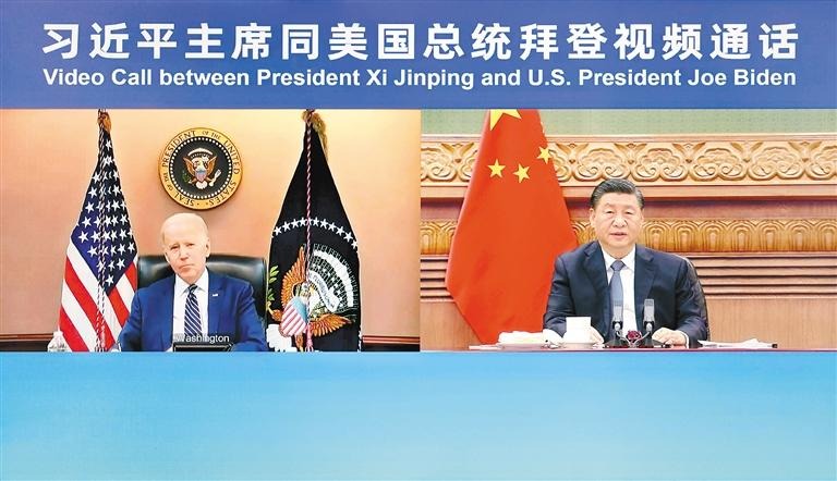 3月18日晚,国家主席习近平在北京应约同美国总统拜登视频通话。