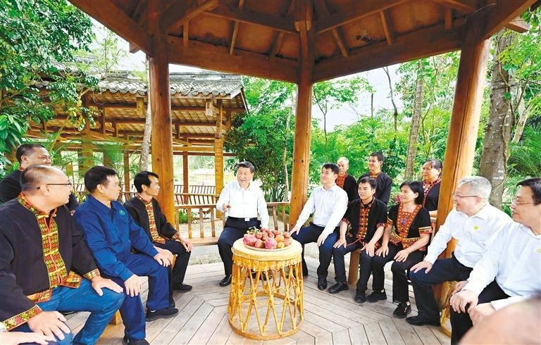 4月10日至13日,习近平在海南省委书记沈晓明、省长冯飞陪同下,先后来到三亚、五指山、儋州等地,深入科研单位、国家公园、黎族村寨、港口码头等进行调研。