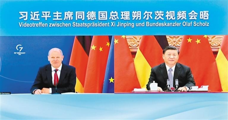 国家主席习近平5月9日下午同德国总理朔尔茨举行视频会晤。