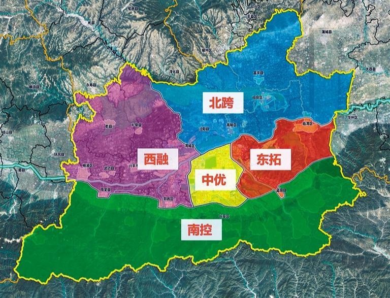 “南控、北跨、西融、东拓、中优”空间发展战略实施规划:制定“南控、北跨、西融、东拓、中优”空间发展战略实施规划,衔接国民经济和社会发展五年规划,编制城市更新、土地整治、生态修复、基础设施、公共服务设施和防洪排涝工程等重大项目清单,明确阶段性工作重点和任务。