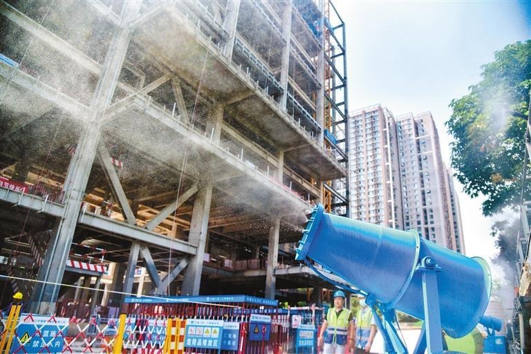 由中建三局西北公司承建的西安安达仕酒店项目,全程按照抑制扬尘污染要求,在施工时通过喷雾设备降尘。