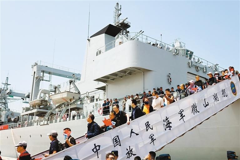 “强大的祖国是我们坚强的后盾!”“感谢国家!看到我们的军舰,我感到祖国的强大,我非常自豪。”朴实的话语,道出激动的心情。