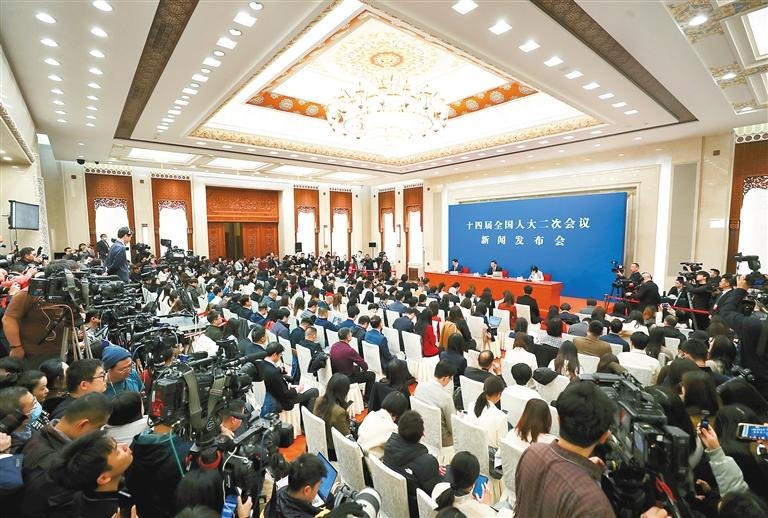 十四届全国人大二次会议4日中午举行新闻发布会,大会发言人娄勤俭就会议议程和人大有关工作回答了中外记者提问。