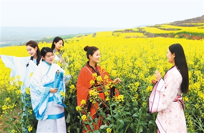 兴致勃勃参加乡村游的市民在长安区魏寨街办油菜花海赏花。(资料照片 首席记者 李明 实习生 周艺云 李国元 摄)
