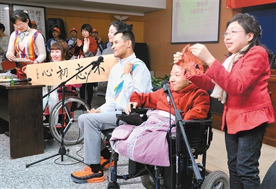 残疾人朋友深情诵读,展现了良好的精神面貌。(记者 王旭东 摄)