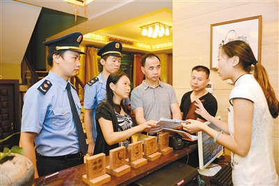 福建武夷山市纪委组织的检查组人员在武夷山度假区一家私人会所进行公款消费检查(2014年9月1日摄)。