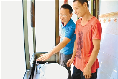 中午我们是在贫困户村民吴关喜家掏钱吃的农家乐。“尽管刚刚开张,但生意还行!”村民吴关喜回答着曲玮的问询。上次采访吴关喜家的时候,只是听他说想让曲书记帮扶开办农家乐,而这次记者再来采访时,吴关喜家的农家乐已经漂亮地开张了:一楼、二楼分别修建了太阳能洗澡间,家中的旱厕改成了水厕,还配备了洗手池和镜子,跟城里人的卫生间没什么两样。在二楼客房内,崭新的被罩、床单也已经铺好,房间里还安装了空调。