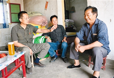 曲玮(左一)在骆峪镇尚兴村村民家了解情况。