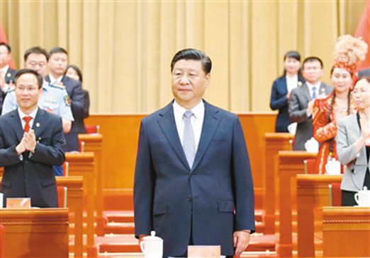 六月二十六日,中国共产主义青年团第十八次全国代表大会在北京人民大会堂开幕。这是中共中央总书记、国家主席、中央军委主席习近平在主席台向与会代表致意。 (新华社记者 姚大伟 摄)