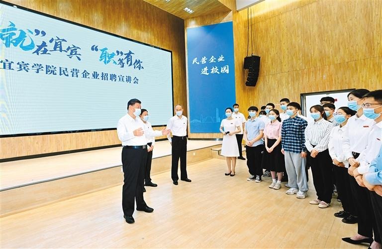 八日上午,习近平在眉山市东坡区太和镇永丰村考察时,同村民们亲切交流。 八日下午,习近平在宜宾学院考察时,向正在参加企业招聘宣讲会的教师、学生、企业负责人了解企业招工需求和毕业生签约率等情况。■推进...
