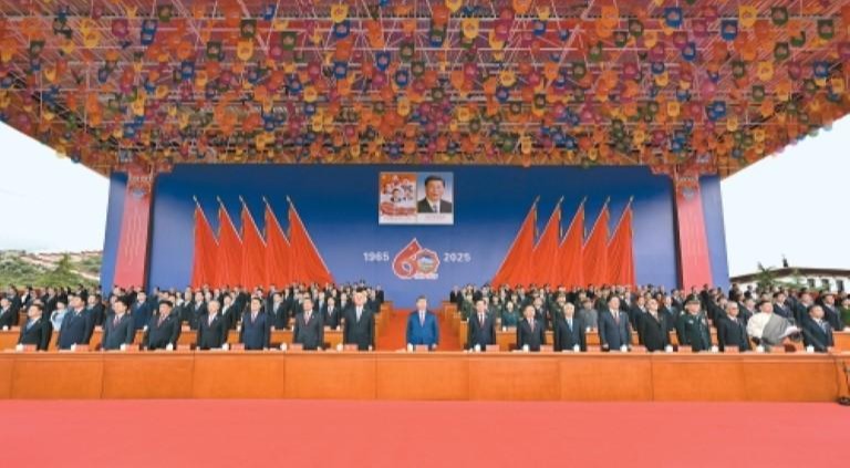 八月二十一日上午,西藏各族各界干部群众约两万人欢聚拉萨市布达拉宫广场,热烈庆祝西藏自治区成立六十周年。中共中央总书记、国家主席、中央军委主席习近平出席庆祝大会。八月二十一日上午,西藏各族各界干部群...